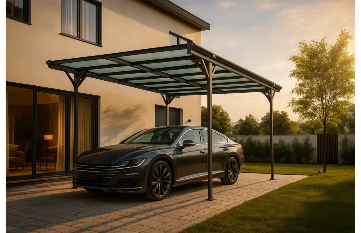 Executăm la comandă garaje modulare și carport-uri auto din tablă metalică.