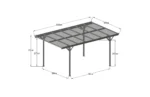 Cu dimensiuni generoase de 3050 x 5030 mm și o înălțime de 2320 mm, carportul oferă spațiu suficient pentru adăpostirea în siguranță a vehiculului.