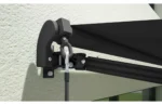Culoarea gri antracit a casetei din aluminiu și pânza gri închis cu dungi oferă un aspect modern și ușor de integrat în orice stil arhitectural.