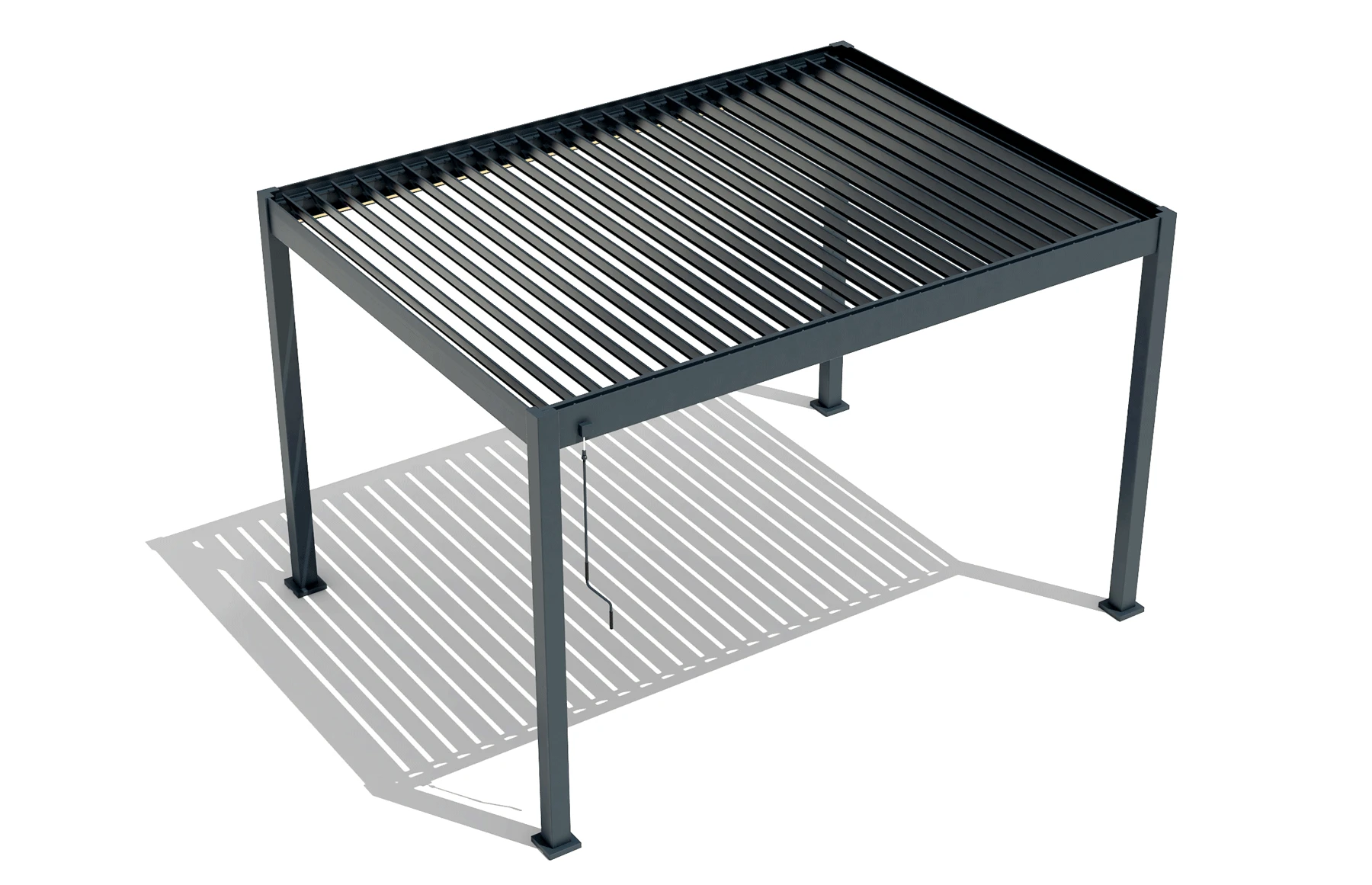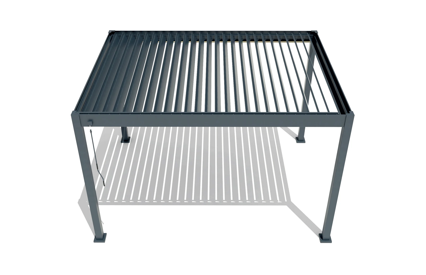 Sistemul de lamele reglabile permite controlul precis al luminii și ventilației, oferind protecție împotriva soarelui și ploii ușoare.