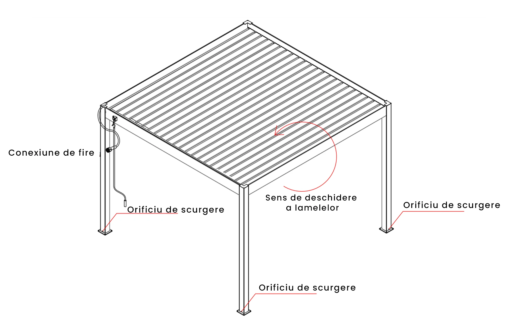 - Nu se recomandă depozitarea obiectelor sensibile la umezeală sub pergolă.