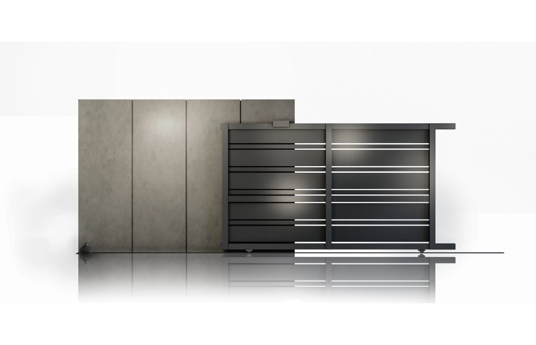 Prima pagină Produse din Aluminiu Porți/Panouri de gard standard din aluminiu Poartă culisantă aluminiu model Neptun 3000×1800 mm – RAL 7016, cu sau fără automatizare Somfy